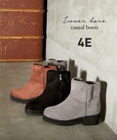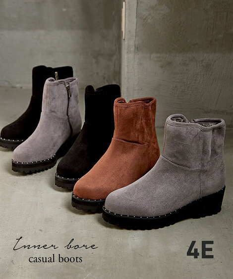 ブーツ 大きいサイズ レディース ゆったり幅広 内ボア カジュアル ワイズ4E グレー/ダーブラウン/ブラック 23.5〜24.0/24.5〜25.0/25.5〜26.0/26.5〜27.0cm ニッセン nissen