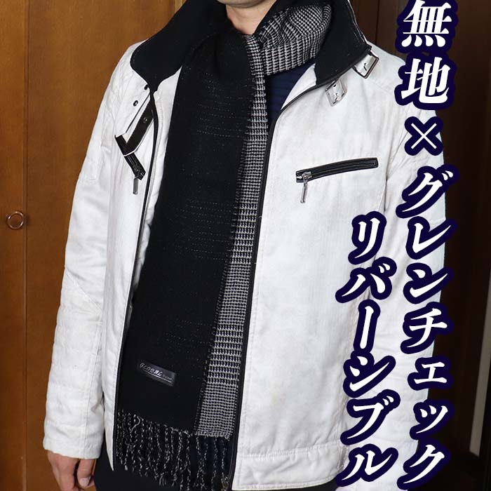 裏面に覗くグレンチェックがおしゃれウール 100% シンプルな無地と上品なグレンチェック柄のリバーシブルメンズマフラー リバーシブルになっているので首元に巻いた時とてもおしゃれです ギフトにもお勧めですシャツの中、セーターの上、防寒対策に、首元のアクセントに重宝します コーデのアクセントとして首元をおしゃれに彩ってくれます 通勤用、通学用、オフタイムに様々なシーンで防寒対策しながら、おしゃれ度をアップする冬のマストアイテム4カラーウールなのにチクチクしない巻き方のアレンジをお楽しみいただけますとても柔らかいマフラーですので、いろいろな巻方をお楽しみいただけます大切な方への贈り物私たちがこころを込めてラッピングしますラッピングサービスを220円で承っております。