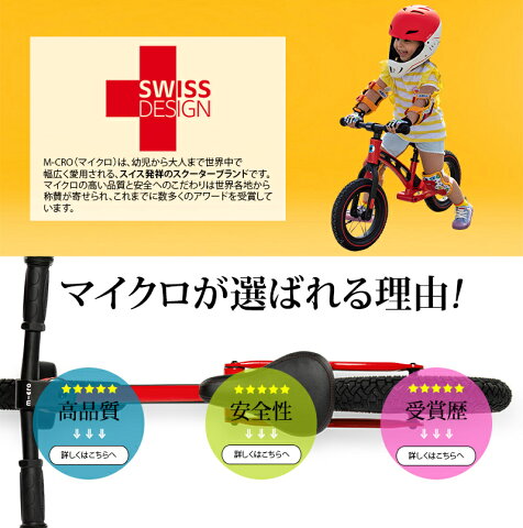 商品名 マイクロ キックバイク デラックス (Micro Kickbike Deluxe) 重量 4.1kg 推奨年齢 2歳〜 送料 送料無料 安全規格 欧米ASTM、CE取得済み 保証期間 ご購入日より1年間 販売元 マイクロスクータージャパン ブランド Micro Mobility デザイン スイス キックバイク注意事項 ※ 必ずご注意ください。