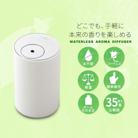 どこでも好きな場所で 手軽に本格的なアロマの香りを楽しめる −水を使わないアロマディフューザー− 香りが違う、お手入れがカンタンで清潔! 水を使うタイプから乗り換える方が増えている、ネブライザー式のアロマディフューザーです。