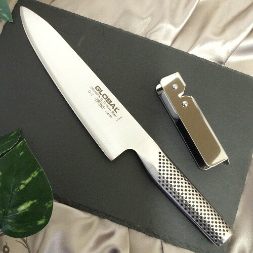GLOBAL 包丁 牛刀2点セット GST-A2 【特典】・貝印 T型ピーラー DH-3000・ふきん GLOBAL 人気のG-2(牛刀)と簡易シャープナーのセット。