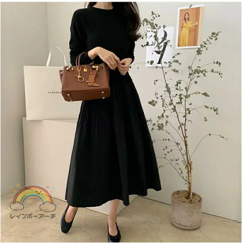 フォーマル ワンピース 体型カバー 黒ワンピース ニットワンピース ロング 春 切り替え 異素材 長袖 大きいサイズ レディース 薄い 夏 マキシ丈 おしゃれ きれいめ 40代 30代 50代 無地ワンピース ロング丈 着痩せ 丸首 ゆったり 母の日 プレゼント