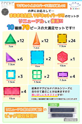 KitWell キットウェル マグビルド パネル ベーシックセット マグネットブロック 70ピース 知育玩具 知育ブロック カラフル 立体パズル クリスマス ギフト プレゼント 誕生日 幼児 子供 キッズ お祝い 男の子 女の子 3歳 4歳 5歳 6歳 誕生日 磁石 積み木 マグネットおもちゃ