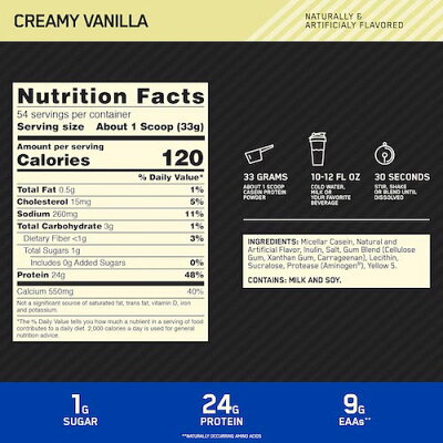 Optimum Nutrition オプティマム ニュートリション ゴールドスタンダート カゼインプロテインパウダー [クリーミーバニラ] 1.81kg Gold Standard 100% Casein Creamy Vanilla 4lb