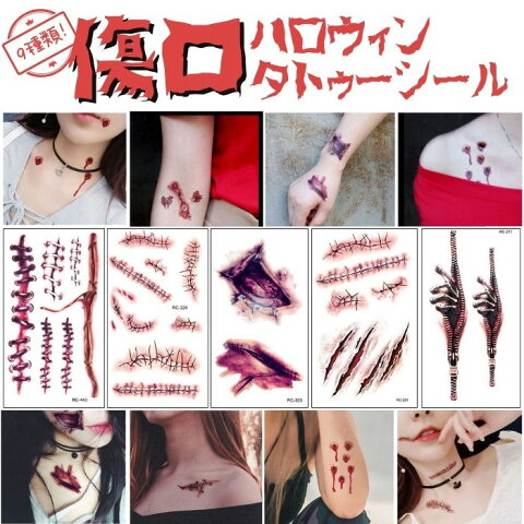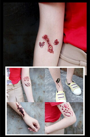 ハロウィン タトゥーシール ハロウィン傷口 大人子供兼用 傷メイク ゾンビメイク フェイクタトゥー リアル 傷シール 傷跡の柄 ボディペイント ハロウィン ホラー イベント コスプレ 送料無料