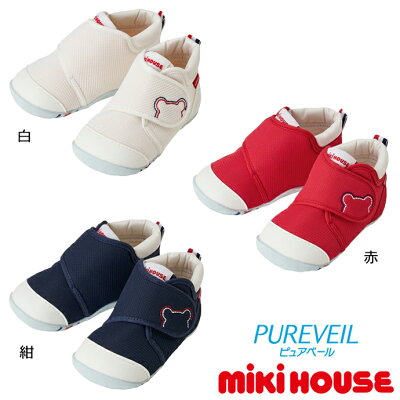 ミキハウスの人気のロングセラー、ポリエステルメッシュの定番ベビーシューズがリニューアル! 中底と内側は、ピュアベール(抗菌・抗ウィルス)加工されたパイル生地を使用。