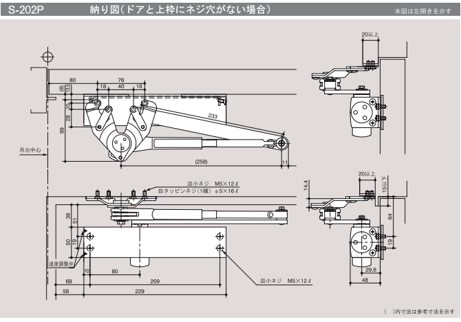 リョービ 取替え用ドアクローザー S-202の情報 適応範囲内であればほとんどのメーカーのドアクローザーを交換することができます。