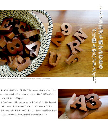バリ島で見つけてきた、木製アルファベット&数字のオブジェ。